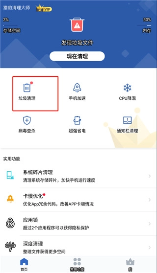 1、游戏加速:猎豹清理大师提升游戏启动速度高达30%,尽享极致流畅的游戏体验!