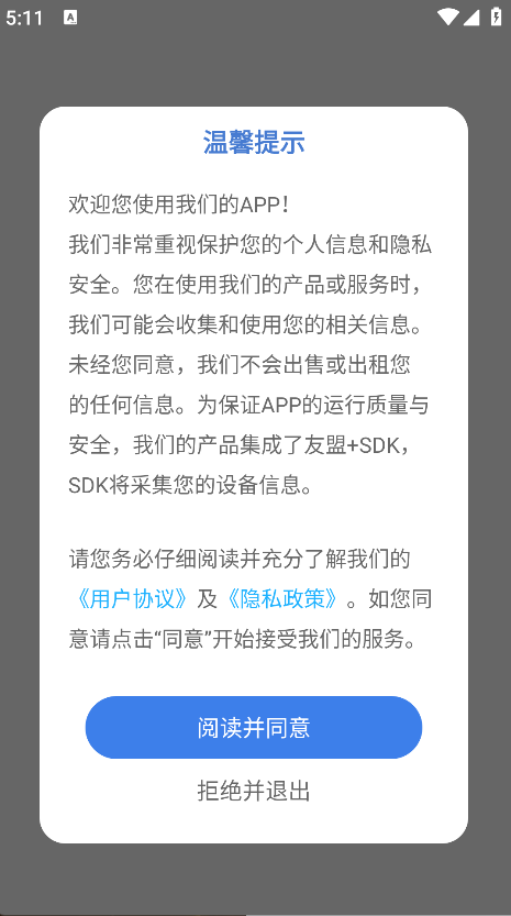 1. 并安装,点击阅读并同意,即可进入主页面;