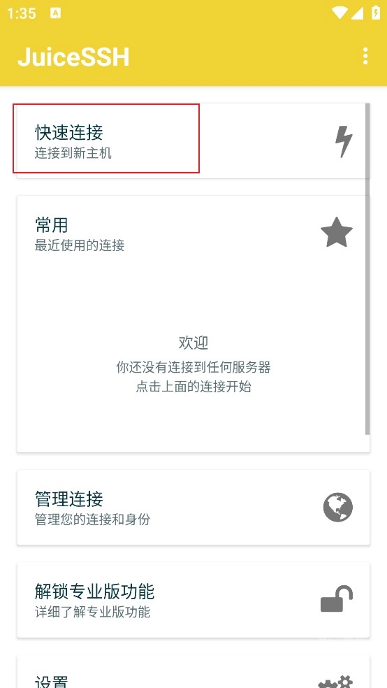 1、首先,从本站下载并安装juicessh软件,之后打开该软件界面,找到并点击“快速连接”选项。