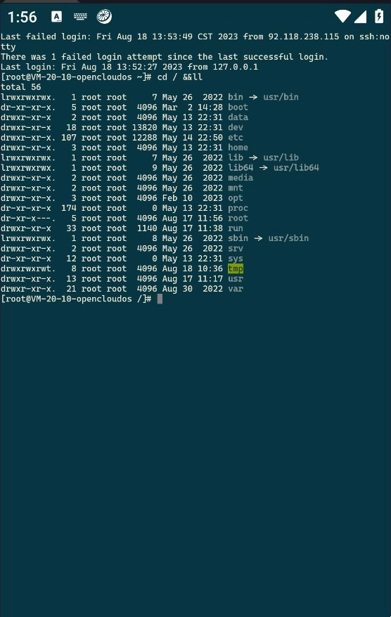 4、完成上述步骤后,我们就能成功连接到Linux服务器(这里以Ubuntu系统为例)。到这一步,通过手机远程SSH访问Linux服务器的地址配置工作就全部完成了。