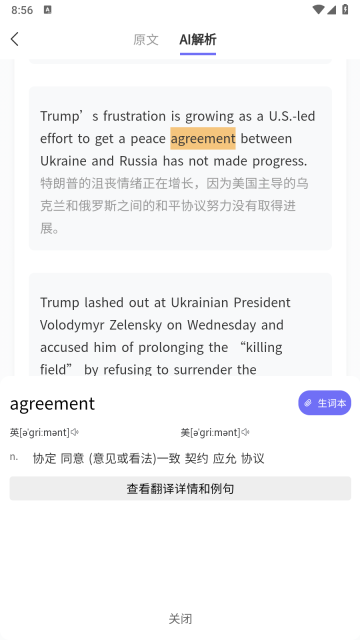 2.遇到不熟悉或不认识的单词,只需一键就能添加到生词本,便于后续进行针对性训练。