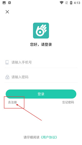 3、要是还没有注册账号,在登录页面点击【去注册】选项,就能进入注册流程,这时候需要填写手机号、密码等信息来完成账号的创建。