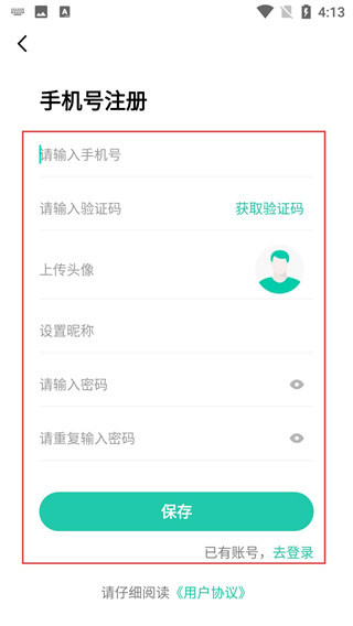 4、进入【手机号注册】页面后,按顺序填写手机号、验证码,接着设置好昵称和密码,最后点击【保存】按钮,就能完成账号注册操作。