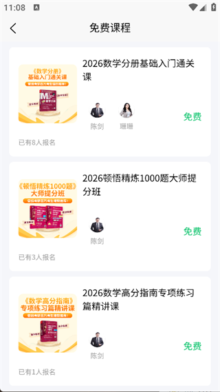 4. 点击主页面的“免费课程”选项,就能看到免费的考研专项课程,大家可依据自身需求挑选合适的课程。