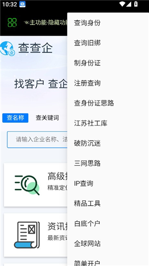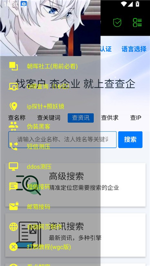 2、首页为企业查询功能,用户输入关键词,即可检索企业的资讯、名称、IP等相关信息。