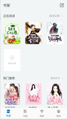 您在阅读过程中可以把书籍添加到书架进行收藏,所有收藏的书籍都会在书架列表里展示。