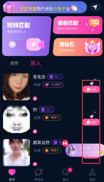 启动后,在推荐页面浏览用户的资料信息,要是碰到让你感兴趣的对象,就点击“心动”按钮来传达你的好感。