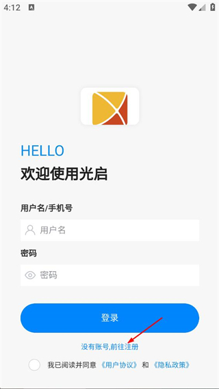 阅读用户协议与隐私政策后,点击“同意”按钮,即可进入光启的登录界面。