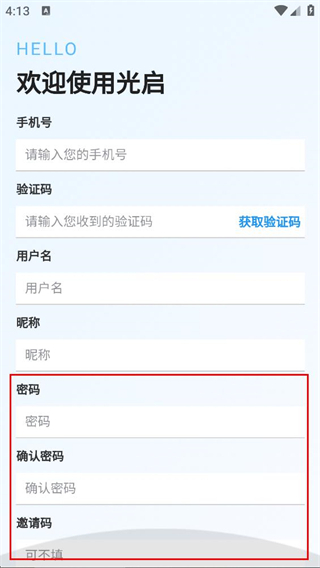 2、在光启的登录页面,点击“没有账号,前往注册”选项,进入注册页面。