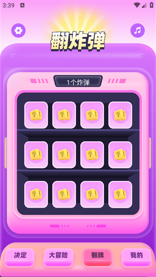 4. 点击“翻牌”按钮后,就能看到“翻炸弹”游戏,该游戏支持随机选择。