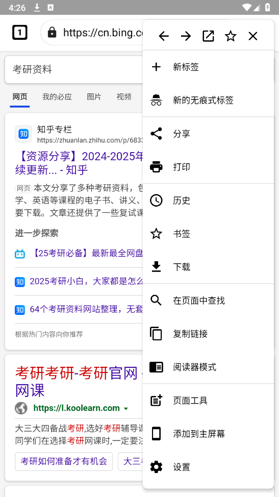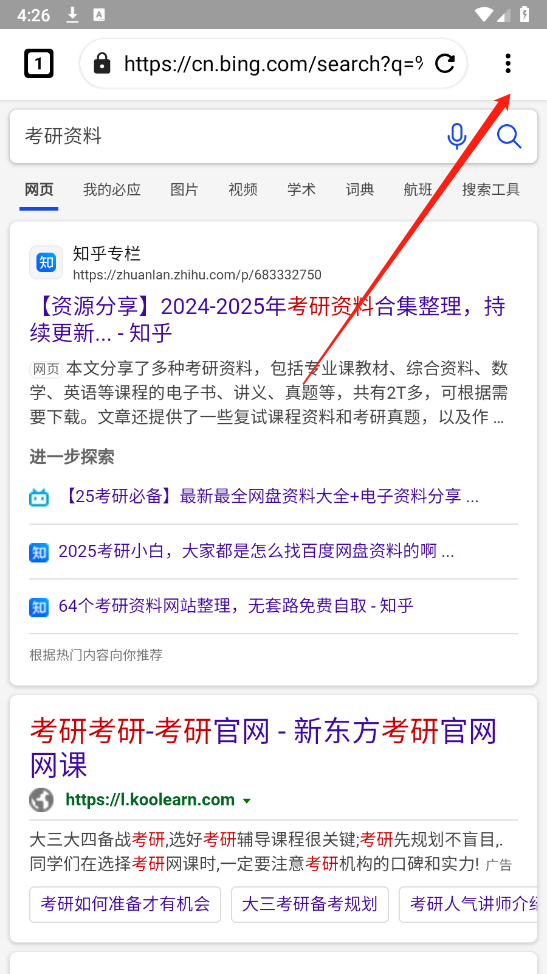 4、搜索结束后,点击右上角的三个点会弹出多个页面工具,选择需要的工具进行使用。