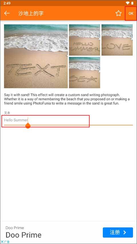 2、进入到这个功能界面之后,在文本下面输入你想要写的内容,点击右上角的OK按钮进行制作。