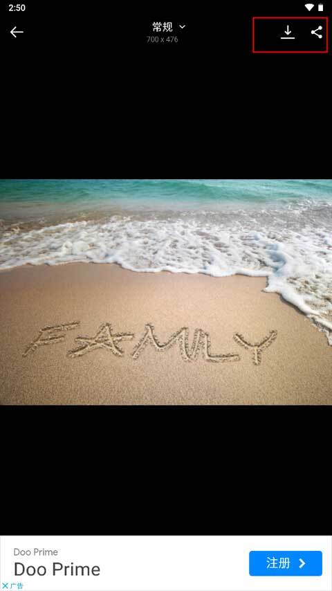 4、制作好的沙滩字体可以点击右上角的分享或按钮,保存到相册或分享到社交平台上都可以。