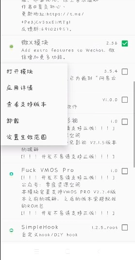 重启之后重新进入微信设置中的模块就能使用了。