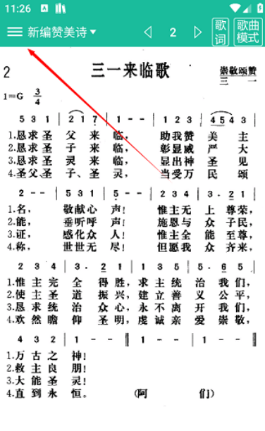 2、收集了诸如新编赞美诗、补充本、新编赞美短歌、雅歌、赞美诗歌1218等各类赞美诗。