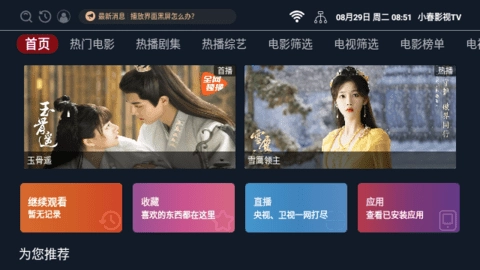 小春影视TV版一款电视盒子追剧,在这款中,你可以自由地享受到追剧的乐趣,有许多追剧的功能,保证一次看个过瘾,而且还提供了多种类型的影视分类,喜欢的朋友千万不要错过哦!