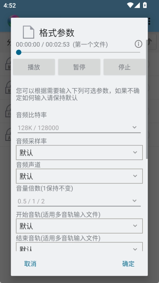 5、支持选择超多参数:可以指定比特率,分辨率,帧率,采样率,声道,软件编码器和硬件编码器mediacodec等;