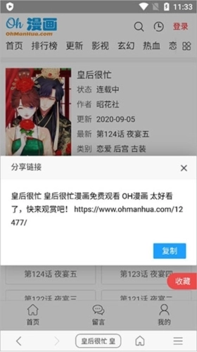 5、挑选一个网站进入,可进行观看、留言操作,还能更换界面主题、复制链接等,使用起来十分便捷。
