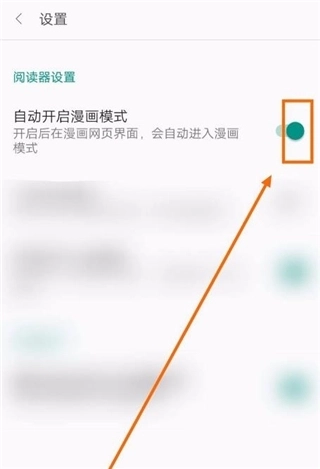 5、右置“自动开启漫画模式”的按钮圆点。