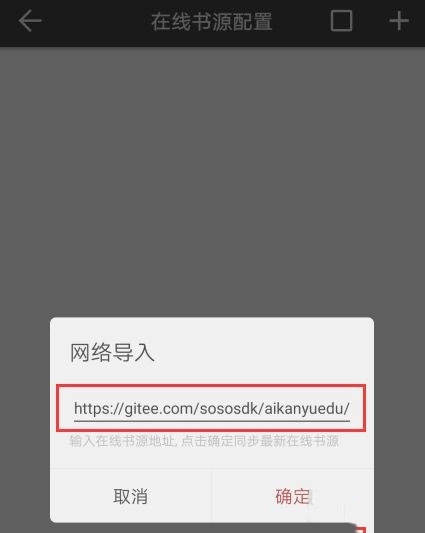 5、选择网络导入或者本地导入。这里以网络导入为例,点击进去后,就可以输入在线书源的地址,然后点击确定即可。