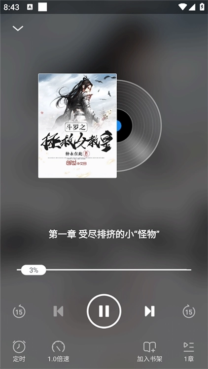 4、进入听书播放页面,您还可以在下方设置播放定时、倍速、快进等功能。