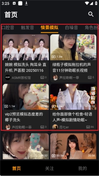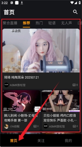 2、进入软件首页后,界面如图所示。该软件可提供各类热门的ASMR沉浸式音源。