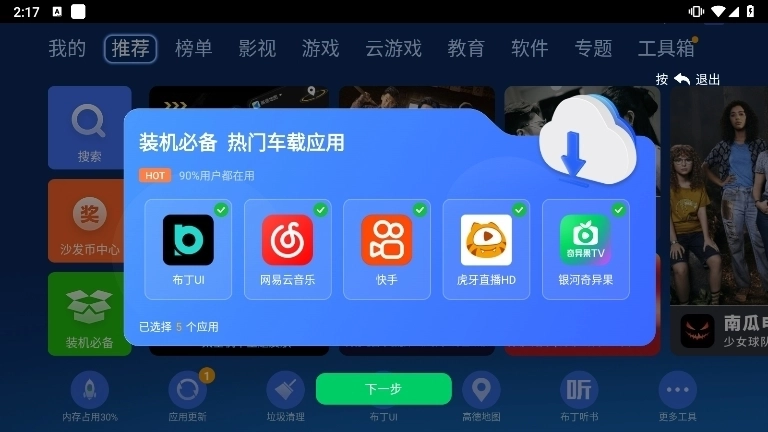 2、接着我们前往的首页,在下方可以选择安装推荐的各类专属车载应用