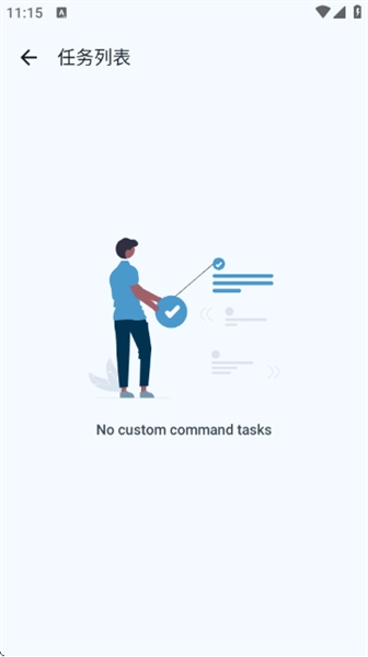 点击右上角的任务列表图标,就能查看自定义命令任务(初始状态下没有任务时会显示“No custom command tasks”)。