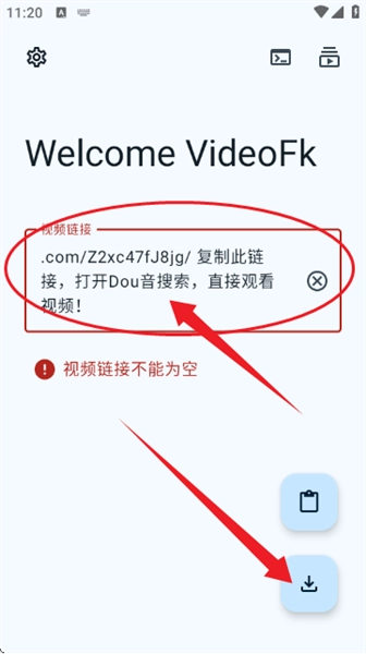 用户只需复制目标视频的URL链接,粘贴到Videofk中,系统便会自动解析该链接并完成准备工作。