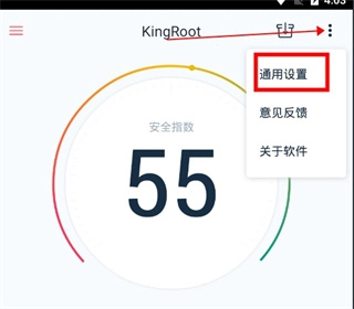 3、Root完成后,点击软件右上角“更多菜单”图标,在弹出的选项中选择“通用设置”。