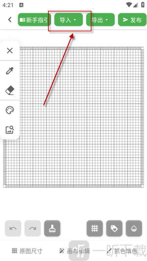 2. 若希望快速生成模板,可点击“导入”上传图片,软件会自动将其转换为拼豆图纸;若倾向手动设计,则点击“画布编辑”,在设置好画布尺寸后即可开始创作。