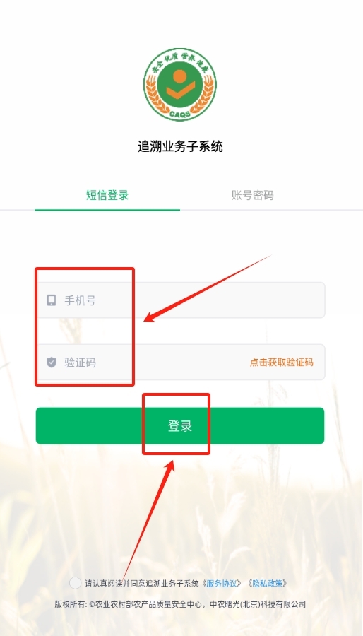 2、进入登录页面后,输入本人手机号,接着获取并填写验证码,以此完成登录流程。