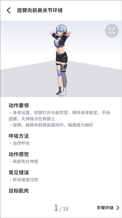 7、健身教程同样规范,开启训练时,视角支持360度无死角旋转,能从各个角度观看,并且可以查看详细的动作要领。