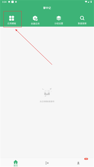1、在【小石榴】首页找到并点击【应用模板】选项,进入模板仓库页面后,就能选择各类功能模板了。