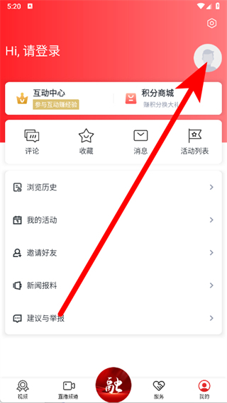 2、在我的页面,点击右上角的头像区域。
