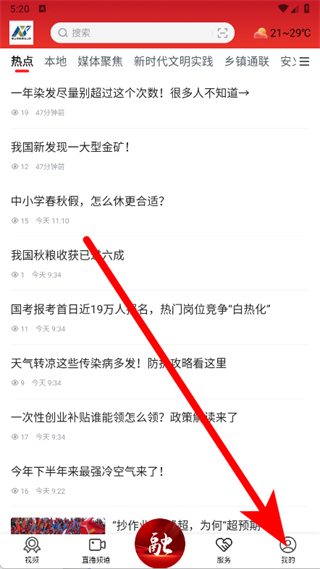 1、打开掌上安义,点击首页右下角我的。