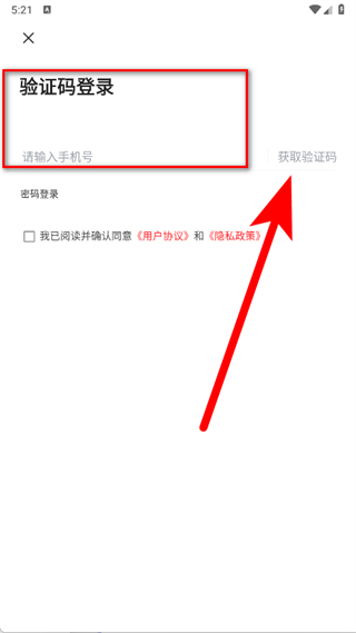 3、进入验证码登录界面,填写手机号后,点击“获取验证码”按钮。