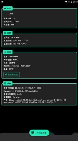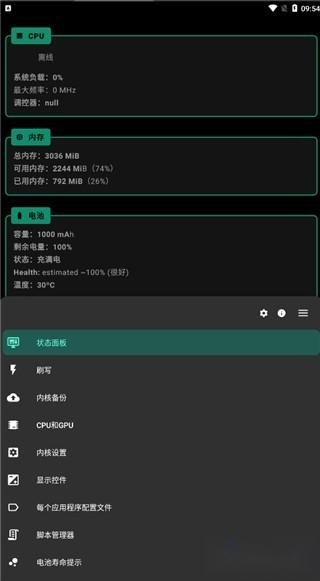 应用程序的主页(即仪表板)会汇总您当前的各项设置,同时展示实时的CPU与GPU频率、温度、内存占用情况、设备运行时长、深度睡眠状态、电池电量及温度,还有调控器和I/O相关设置。