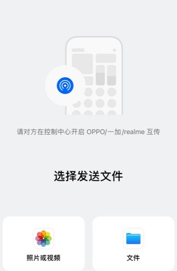 打开应用后,其他设备可以直接借助OPPO、一加或realme的互传功能,向本设备发送文件。