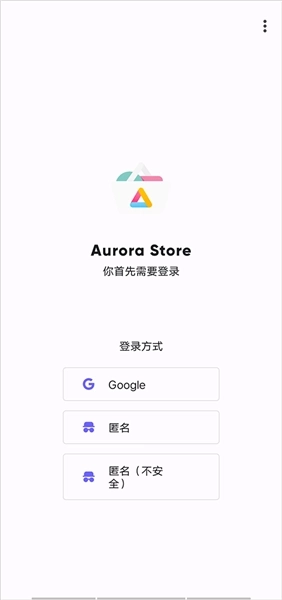 1、打开应用后,首先需要进行登录操作,登录方式有三种,分别是Google、匿名、匿名(不安全);