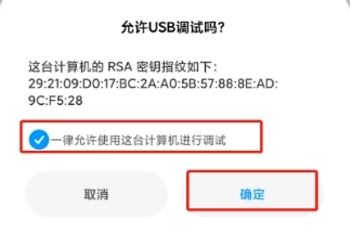 用USB数据线把你的Android设备和电脑连起来。要是弹出了窗口,就在Android设备上同意开启USB调试(要是你不是第一次把设备和电脑连接,可能不会弹出这个窗口)。