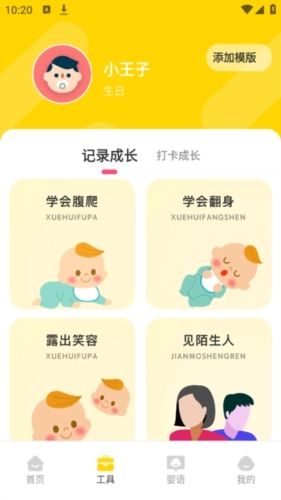 -记录成长,在这里,我们可以记录宝宝的成长点滴,让你不错过宝宝成长的每一个阶段。就让我们陪你一同见证宝宝的成长吧!