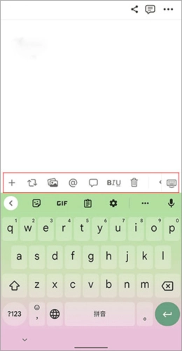 2、进入编辑界面后,先输入标题内容,接着点击下方的文本区域,就能看到输入法上方弹出工具栏。