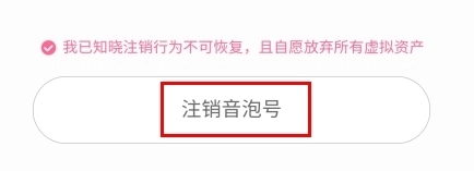4、在注销页面里,点击“注销音泡号”按钮即可直接完成注销操作。