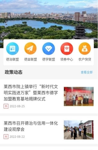 上善莱西是莱西市上善崇德志愿服务协会推出的本地综合服务平台,集新闻资讯与便民服务于一体。平台涵盖丰富的生活便民服务和各类政务信息,用户可通过内容查询功能在线解决多种需求,无需出门就能及时了解周边动态。图文资讯一应俱全,且分类清晰,帮助用户快速找到关注的内容。