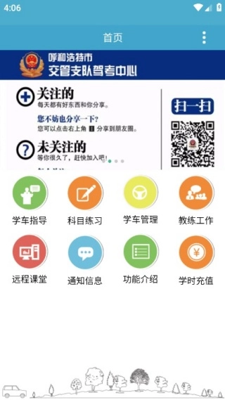 3、登录后进入首页,这里提供了学车指导、各科目练习以及个人学车进度管理等综合服务。