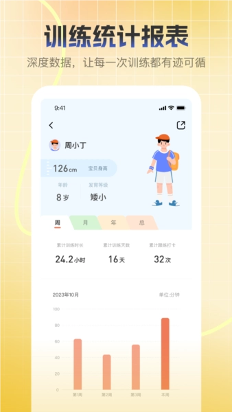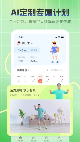 3、配备依托科学的生长发育数据分析算法,保障每位用户获取到个性化的运动方案。