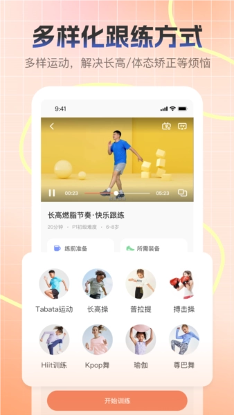 天天长高会依据孩子的身高发育等级、运动基础以及年龄阶段,为其量身定制专属的长高运动计划。针对不同基础的孩子,提供适配的长高课程,通过阶梯式的运动计划组合,助力孩子实时突破长高瓶颈期。此外,这些计划适配无器械的运动场景,让孩子随时随地都能进行练习,长高不再受限制。