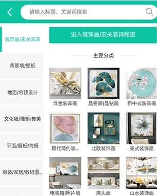 1.打开我图网,首页呈现出的界面如下,为用户提供了装饰画、背景墙、地面吊顶等主要图片板块;