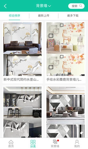 2.可以任意选择一项功能,我这里选择进入背景墙页面。现在能看到上传按钮和“最多”的提示,右上角还支持输入关键字进行搜索。